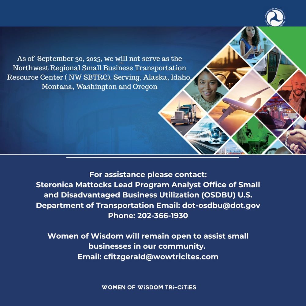 USDOT NorthWest Small Business Resource Transportation Center office has closed as of 09/30/2025 Thank you for your support!