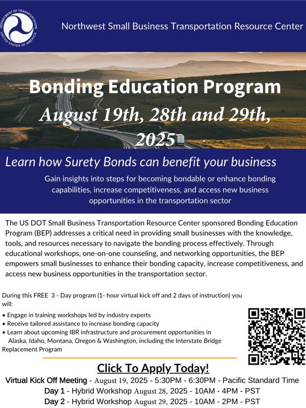 USDOT NorthWest Small Business Resource Transportation Center office has closed as of 09/30/2025 Thank you for your support!